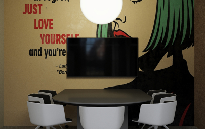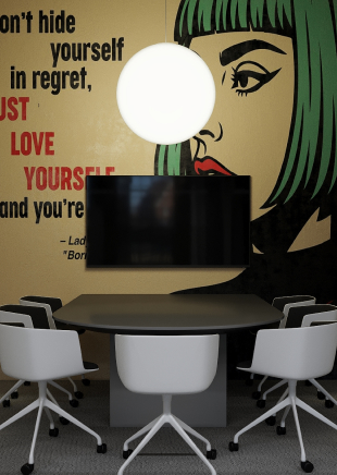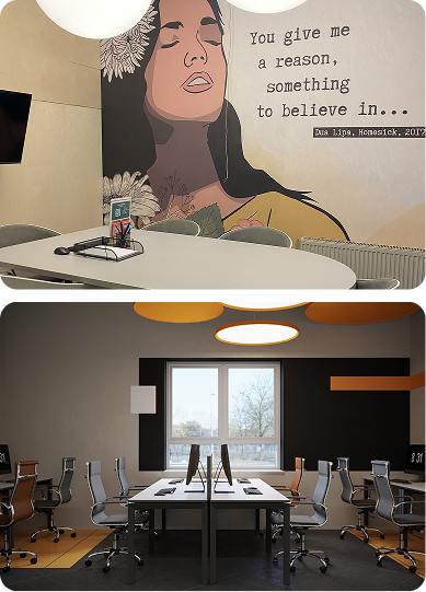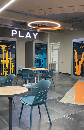 оборудованные переговорки оформлены в музыкальном стиле и предоставляют приватное пространство для проведения важных встреч